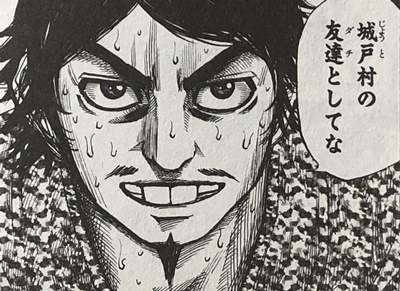 縛虎申が信に騎兵隊に入る様に指示されると、尾平は「今さら俺達の事なんか気にするな」「天下の大将軍になるんだろ」とエールを送りました。