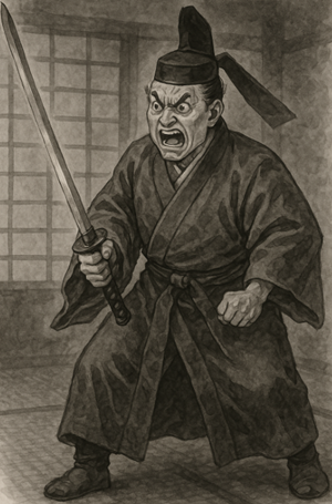 後円融上皇のストレスは極致に達したのか、三条厳子の元に乱入し、突如として剣を抜きました。