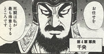 この時にキングダムでは「死闘を得意と豪語する 不死身の干央」と紹介されています。