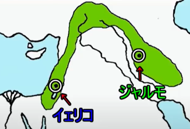 イェリコから始まった初期農耕は肥沃な三日月地帯の東部にあるジャルモにまで伝わります。
