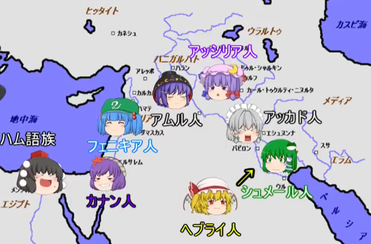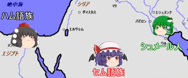 詳しいことは未だに解明されていないのですが、シュメール人がいた頃の民族配置は、エジプトにハム系の民族、アラビア半島にセム系の民族、メソポタミアの南部にはシュメール人となっていたようです。