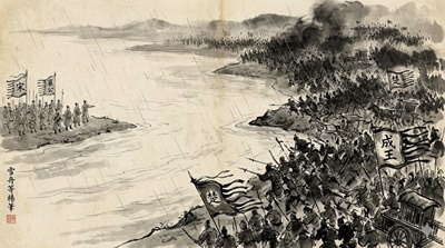 しかし、宋は寡兵で楚の大軍に挑む事になり、これが泓水の戦いであり、川を挟んで対峙しました。