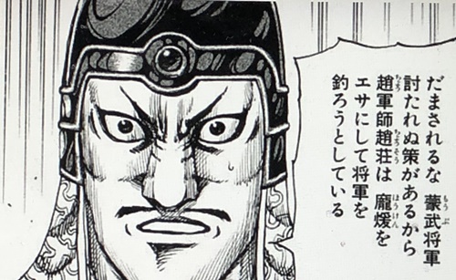 蒙武と隆国は突撃を繰り返しますが、隆国は「嫌な場所に伏兵を配置される」と趙荘の用兵術を認める発言もしています。