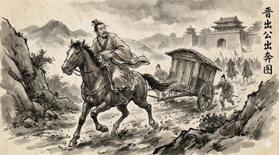 竹書紀年の記述では晋の出公の23年(紀元前452年)に、晋の出公がに出奔した話があります。