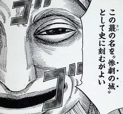 ここまでの晋成常は「人のよさそうなおじいちゃん」という感じでしたが、やはり武将であり「全く愚かな秦人よ。この蕞の名を”惨劇の城”として史に刻むがよい」と凄味を利かせて喋りました。