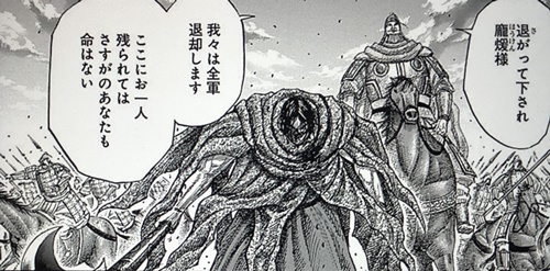 晋成常は李牧には合従軍の落とし所を示す”責務”がある。と告げ、晋成常は自らが殿として残る事になります。