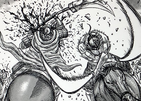 皆が見守る中で龐煖と信が激烈なる一騎打ちを繰り広げますが、晋成常が李牧の元に駆け付けました。