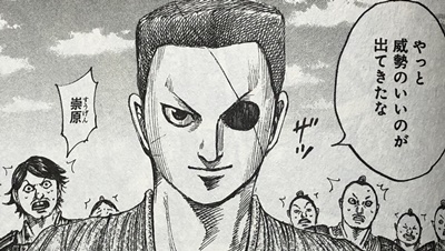 初登場の時は両目でしたが、馬陽の戦いで龐煖と戦い、万極から撤退する時に片目を失いました。