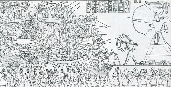 エジプト新王国ではメルエンプタハとラメセス3世の時代に、海の民と戦闘を行った記録があります。